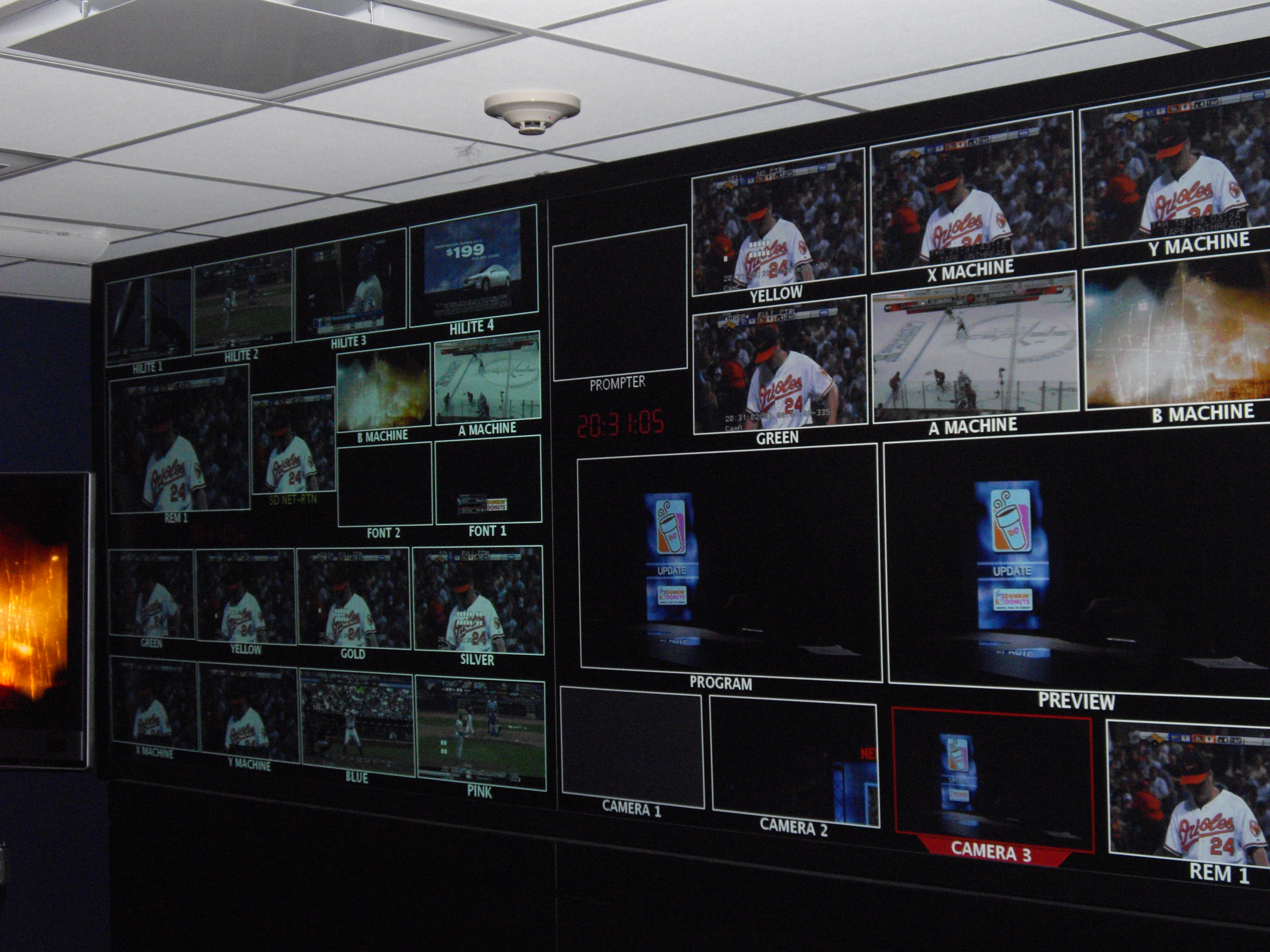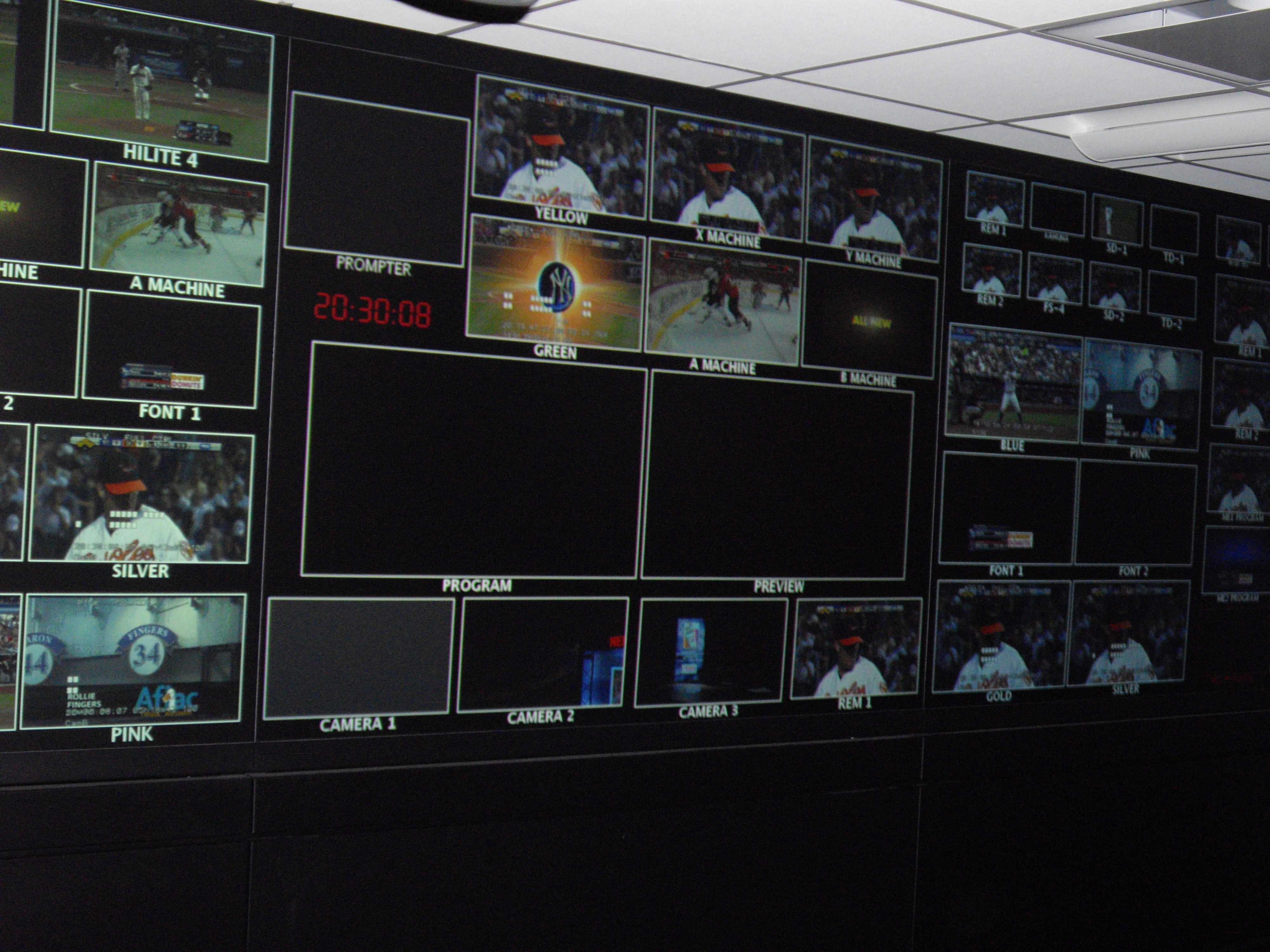 The Video Wall  A commenter on the Blob asked whether the wall of video monitors in the YES studio control room was actually one huge screen with many monitors or a bunch of different monitors…